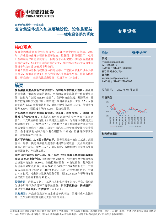 【中信建投证券】【20230721】专用设备行业锂电设备系列研究:复合集流体进入加速落地阶段,设备最受益-43页