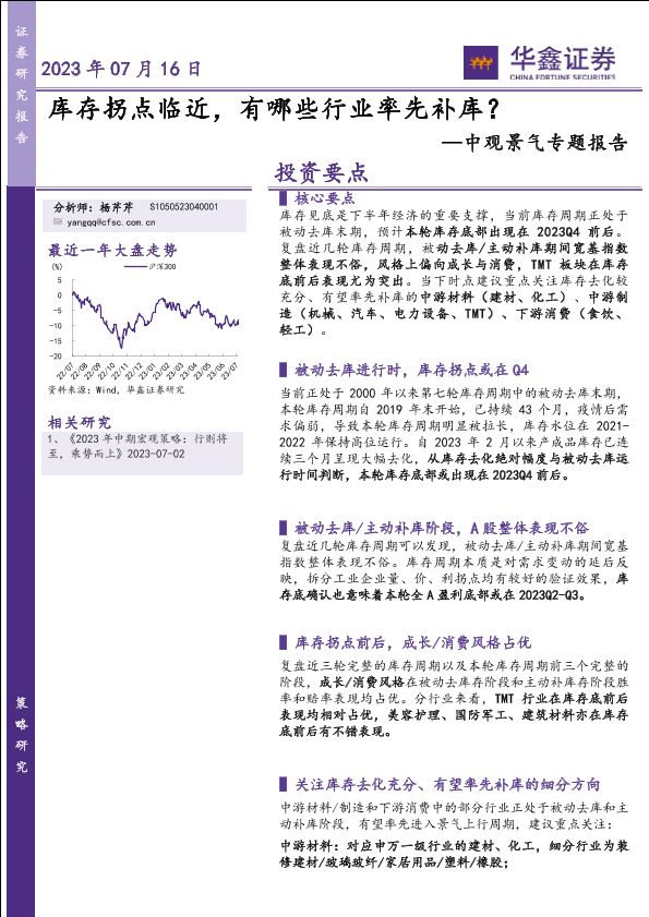 【华鑫证券】【20230716】中观景气专题报告:库存拐点临近,有哪些行业率先补库?-20页