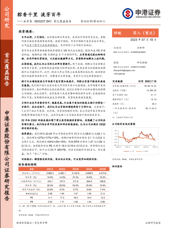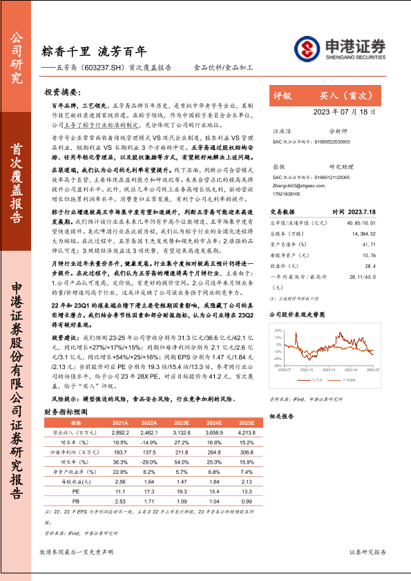 【申港证券】【20230718】五芳斋(603237)首次覆盖报告:粽香千里 流芳百年-32页