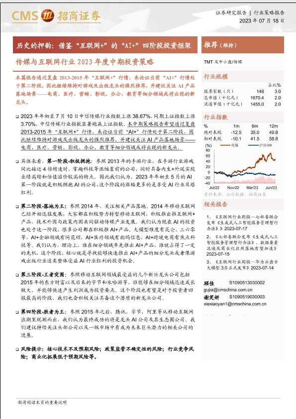 【海通证券】【20230718】传媒与互联网行业2023年度中期投资策略:历史的押韵,借鉴“互联网+”的“AI+”四阶段投资框架-50页