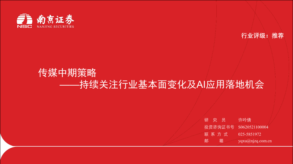 【南京证券】【20230718】传媒中期策略:持续关注行业基本面变化及AI应用落地机会-30页