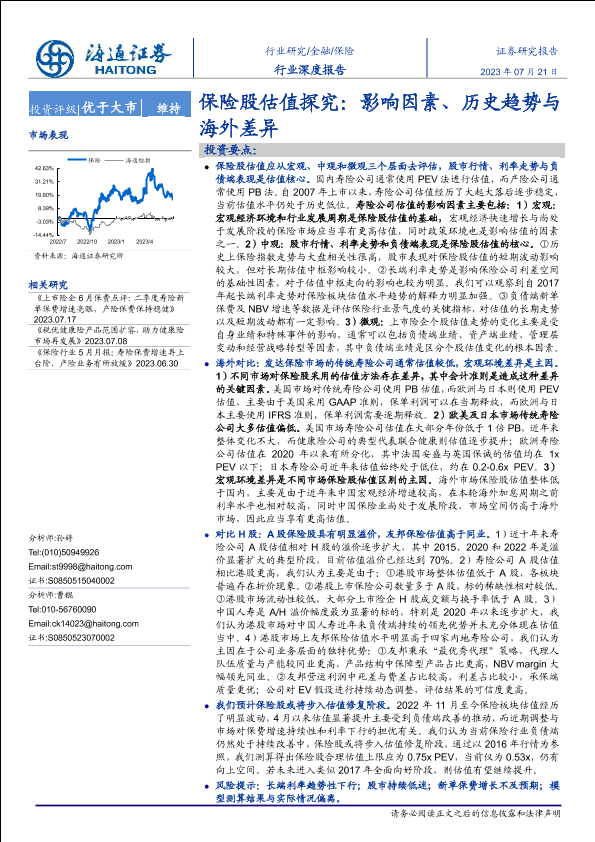 【海通证券】【20230721】保险行业深度报告:保险股估值探究:影响因素、历史趋势与海外差异-32页