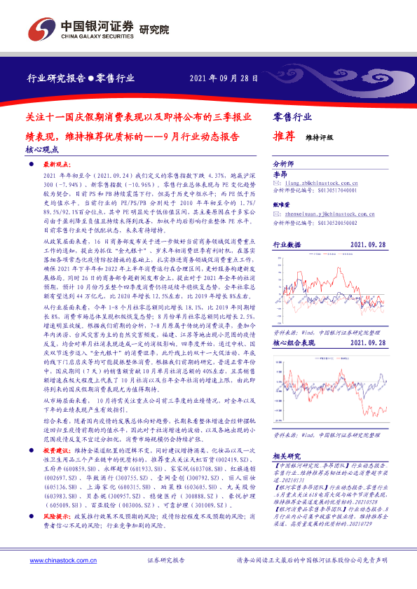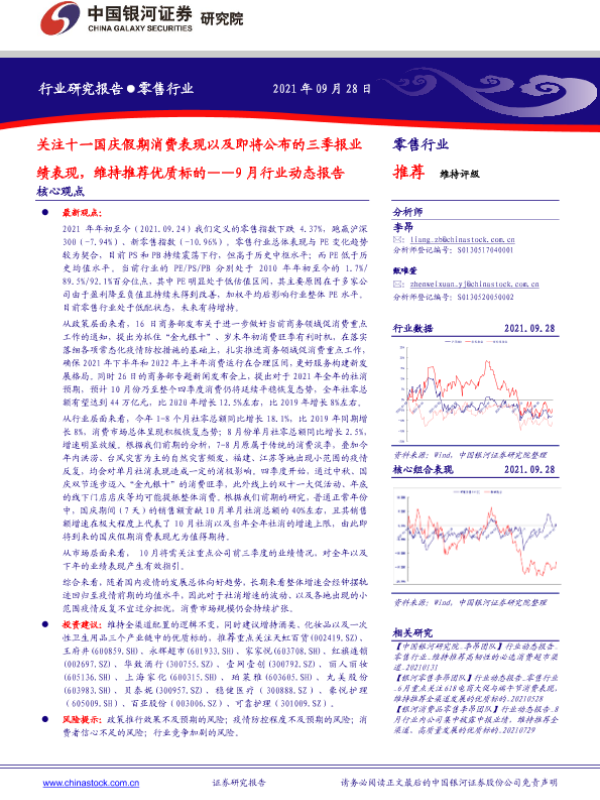 【银河证券】【20210928】零售行业9月行业动态报告:关注十一国庆假期消费表现以及即将公布的三季报业绩表现,维持推荐优质标的-25页