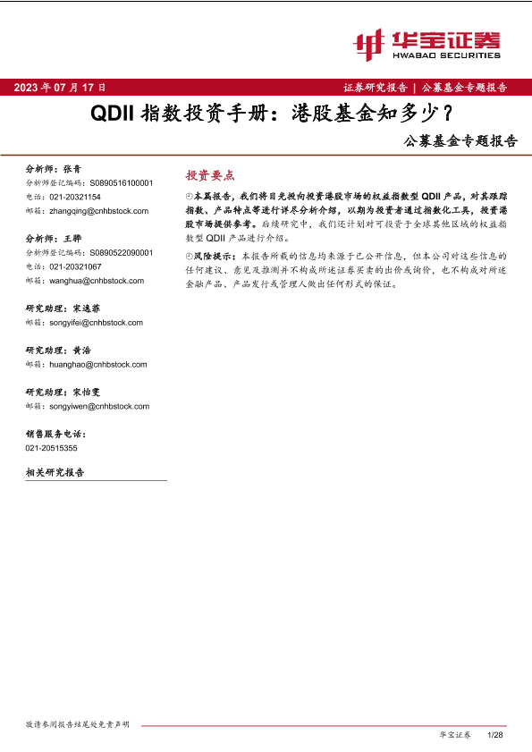 【华宝证券】【20230717】公募基金专题报告:QDII指数投资手册,港股基金知多少?-28页