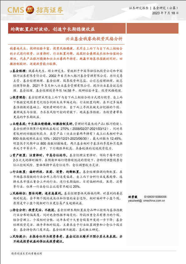 【海通证券】【20230718】兴业基金钱睿南投资风格分析:均衡配置应对波动,创造中长期稳健收益-17页