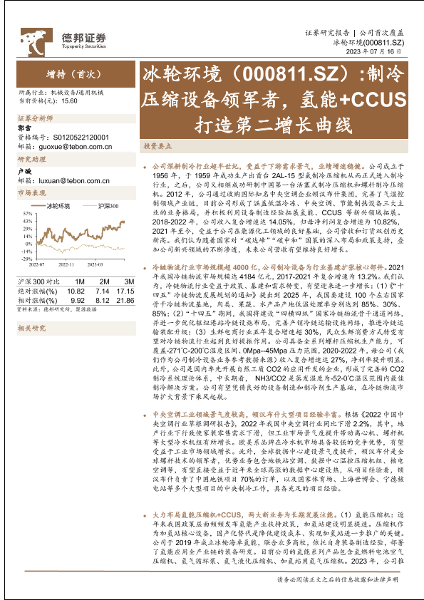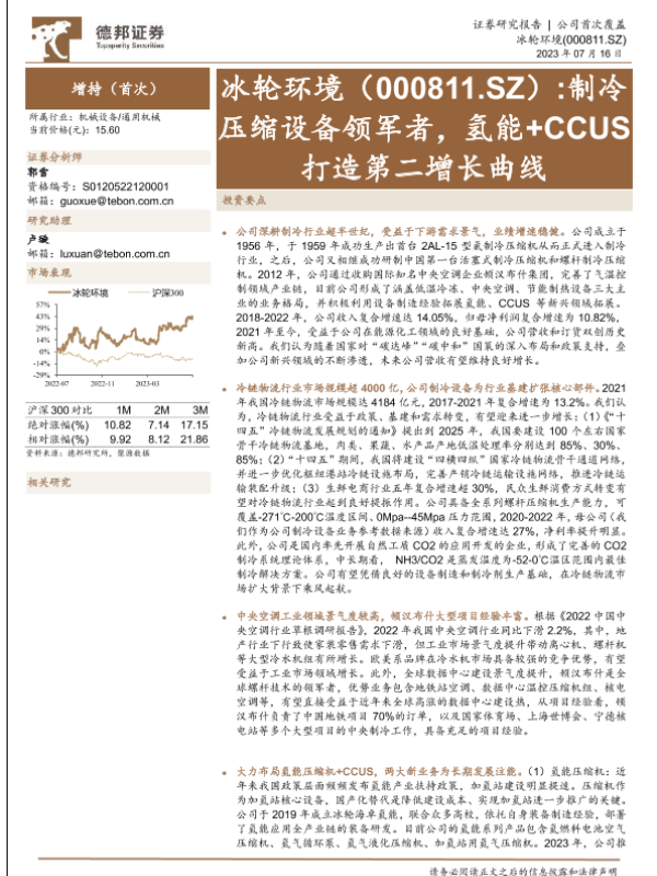 【德邦证券】【20230716】冰轮环境(000811)制冷压缩设备领军者,氢能+CCUS打造第二增长曲线-28页