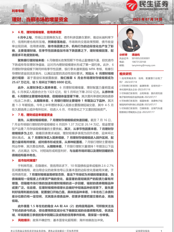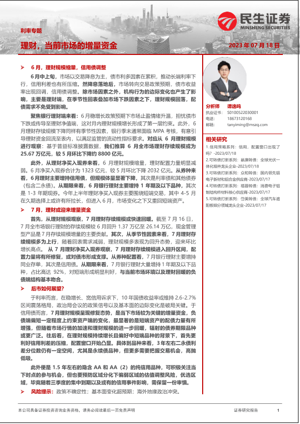 【民生证券】【20230718】利率专题:理财,当前市场的增量资金-19页