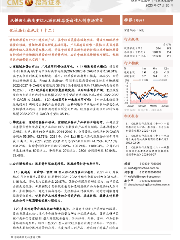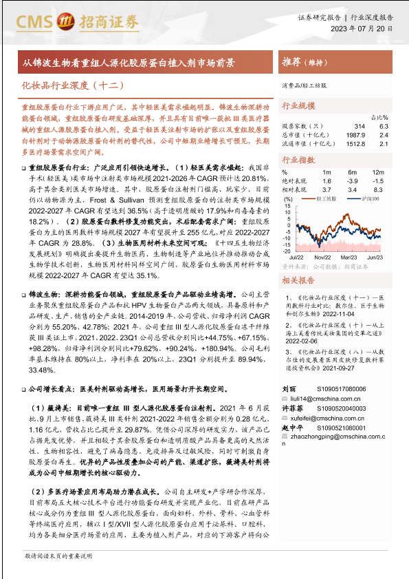 【海通证券】【20230720】化妆品行业深度(十二):从锦波生物看重组人源化胶原蛋白植入剂市场前景-25页