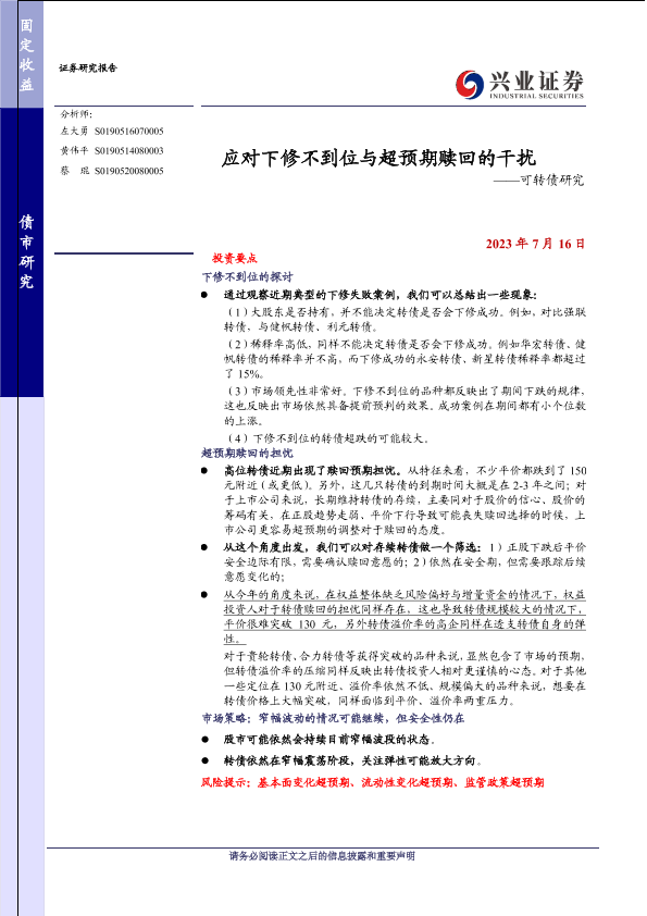 【兴业证券】【20230716】应对下修不到位与超预期赎回的干扰——可转债研究-20页