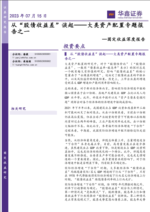 【华鑫证券】【20230715】从“股债收益差”谈起——大类资产配置专题报告之一-18页