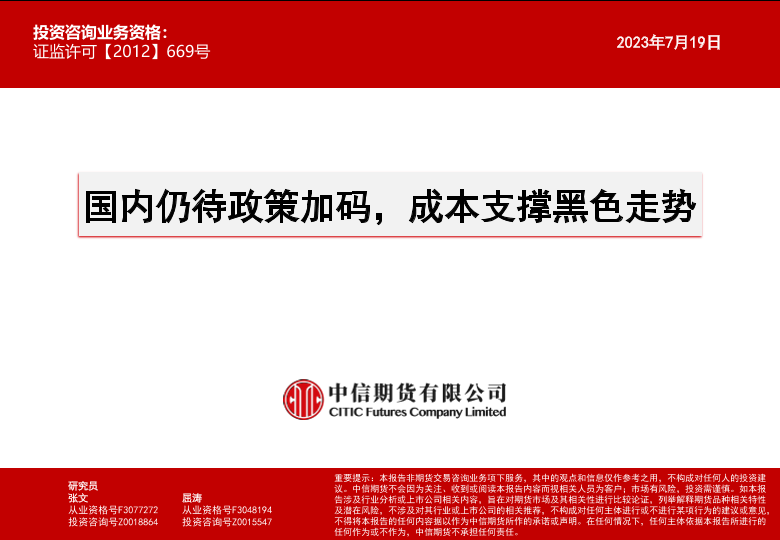 【中信期货】【20230719】国内仍待政策加码,成本支撑黑色走势-15页