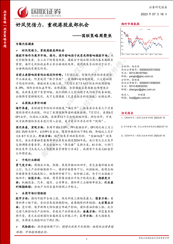 【国联证券】【20230716】国联策略周聚焦:好风凭借力,重视港股底部机会-25页