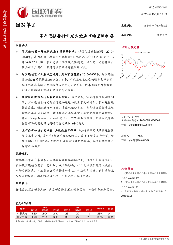 【国联证券】【20230716】国防军工行业:军用连接器行业龙头受益市场空间扩容-24页