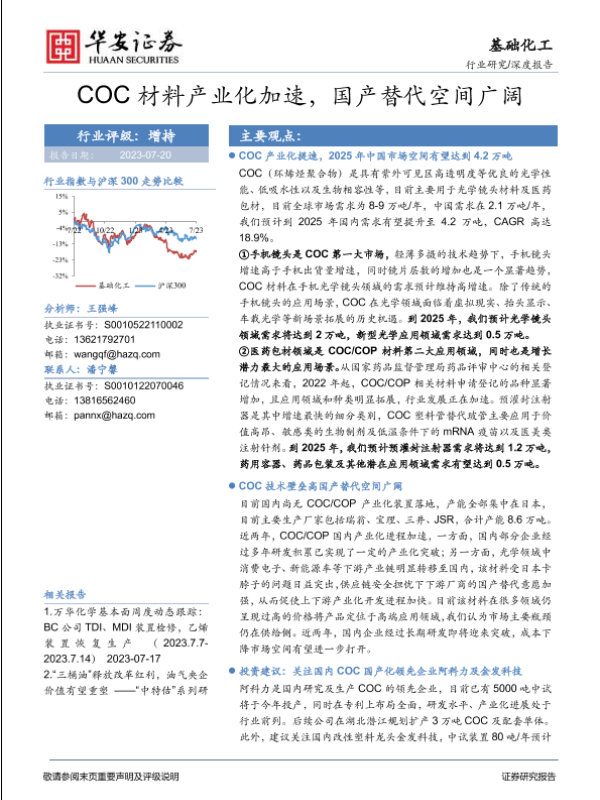 【华安证券】【20230720】基础化工深度报告:COC材料产业化加速,国产替代空间广阔-23页