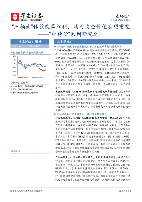 【华安证券】【20230717】基础化工行业“中特估”系列研究报告:“三桶油”释放改革红利,油气央企价值有望重塑-26页