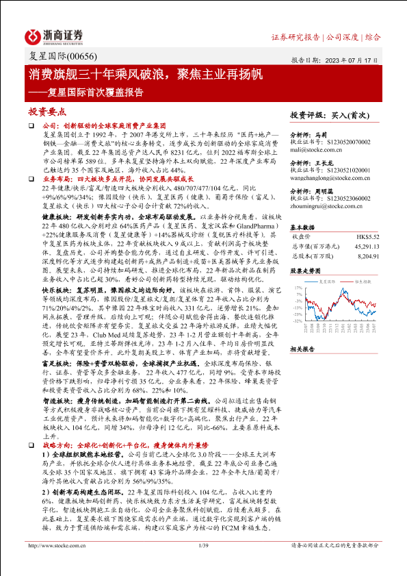 【浙商证券】【20230717】复星国际首次覆盖报告:消费旗舰三十年乘风破浪,聚焦主业再扬帆-39页