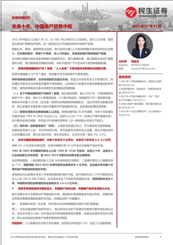 【民生证券】【20230721】未来十年,中国地产销售中枢-19页