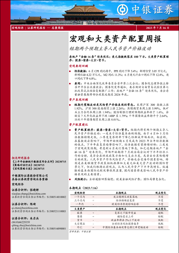 【中银证券】【20230716】宏观和大类资产配置周报:短期两个预期主导人民币资产价格波动-20页
