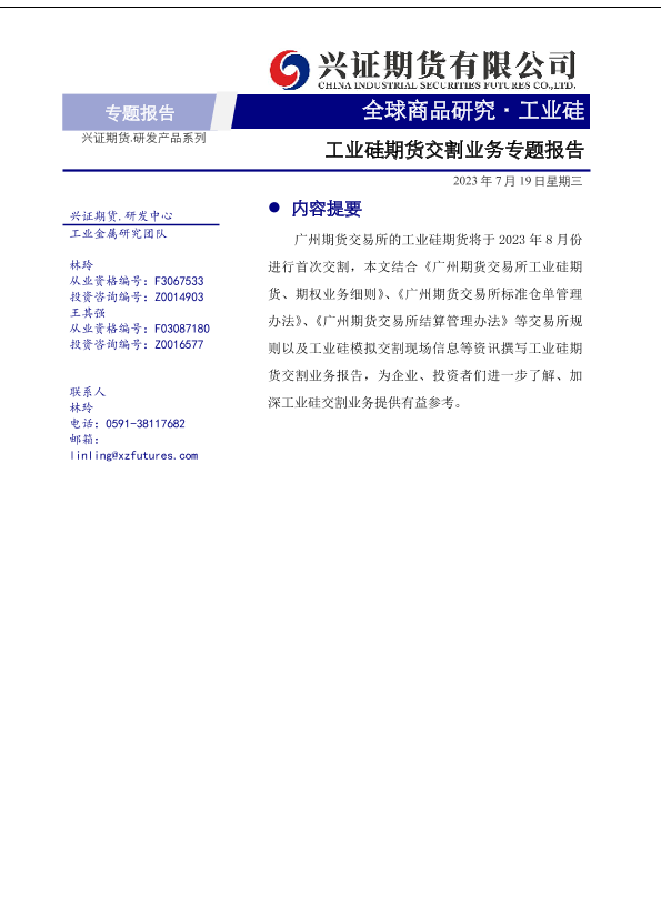 【兴证期货】【20230719】工业硅专题报告:工业硅期货交割业务专题报告-19页