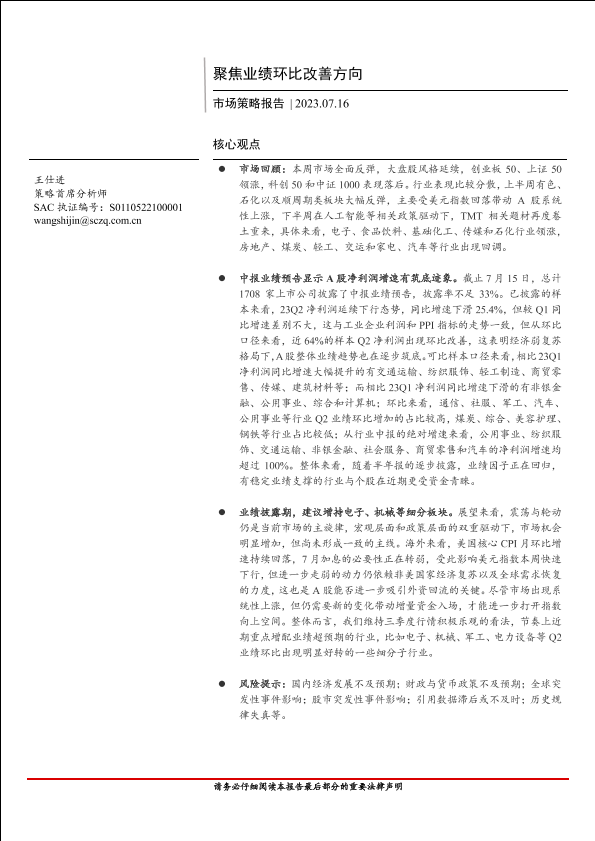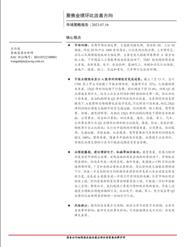 【首创证券】【20230716】市场策略报告:聚焦业绩环比改善方向-16页