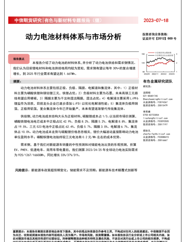 【中信期货】【20230718】有色与新材料专题报告(锂):动力电池材料体系与市场分析-22页