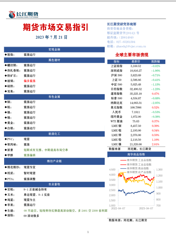 交易指引 商品指数 宏观经济 期货市场 长江期货