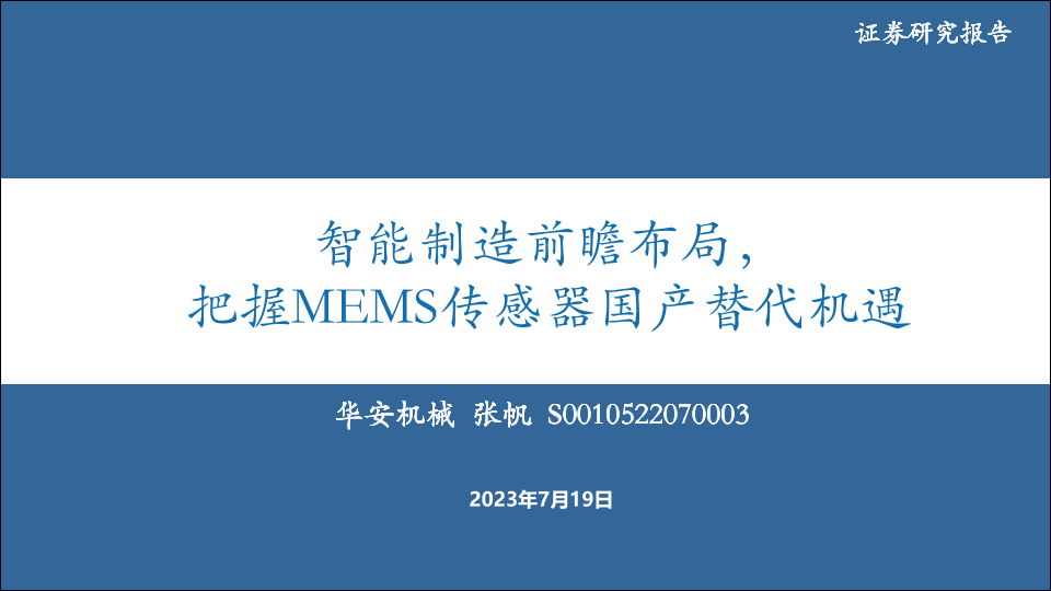 【华安证券】【20230719】机械行业:智能制造前瞻布局,把握MEMS传感器国产替代机遇-52页