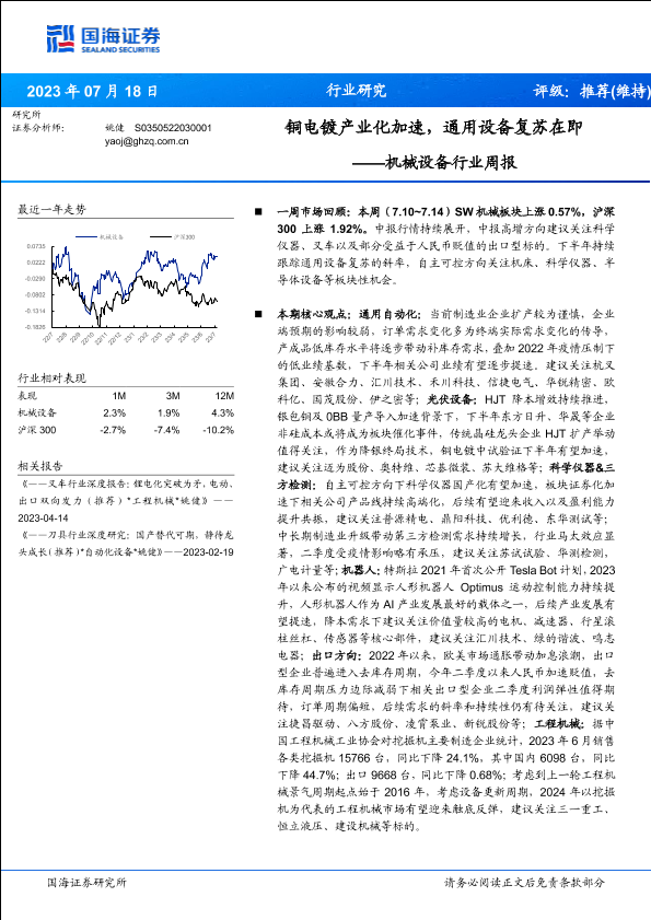 【国海证券】【20230718】机械设备行业周报:铜电镀产业化加速,通用设备复苏在即-19页