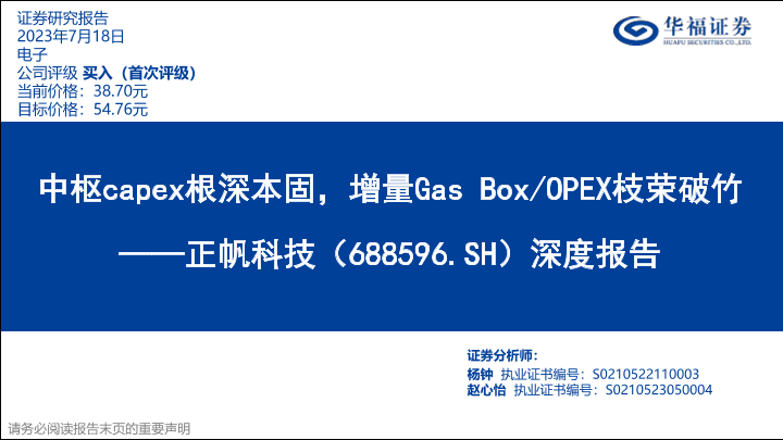 【华福证券】【20230718】正帆科技(688596)深度报告:中枢capex根深本固,增量Gas BoxOPEX枝荣破竹-74页