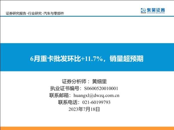 【东吴证券】【20230718】6月重卡批发环比+11.7%,销量超预期-21页