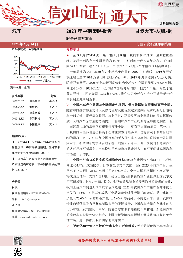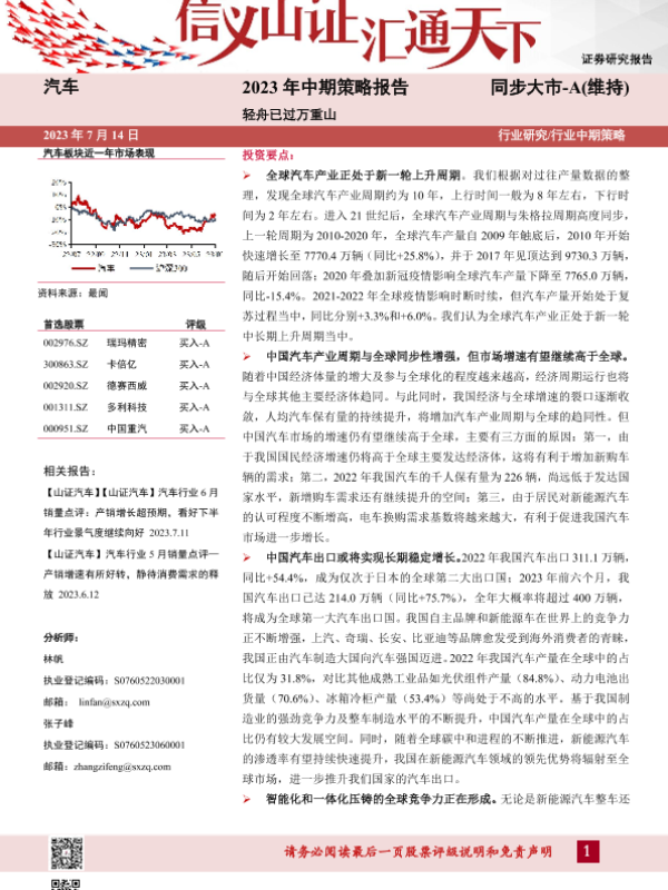 【山西证券】【20230714】汽车行业2023年中期策略报告:轻舟已过万重山-22页
