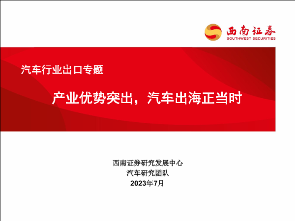 【西南证券】【20230714】汽车行业出口专题:产业优势突出,汽车出海正当时-46页