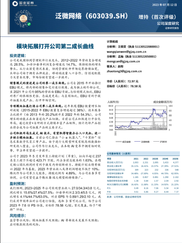 【国金证券】【20230712】泛微网络603039.SH模块拓展打开公司第二成长曲线-17页