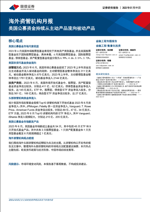 【国信证券】【20230719】海外资管机构月报:美国公募资金持续从主动产品流向被动产品-15页