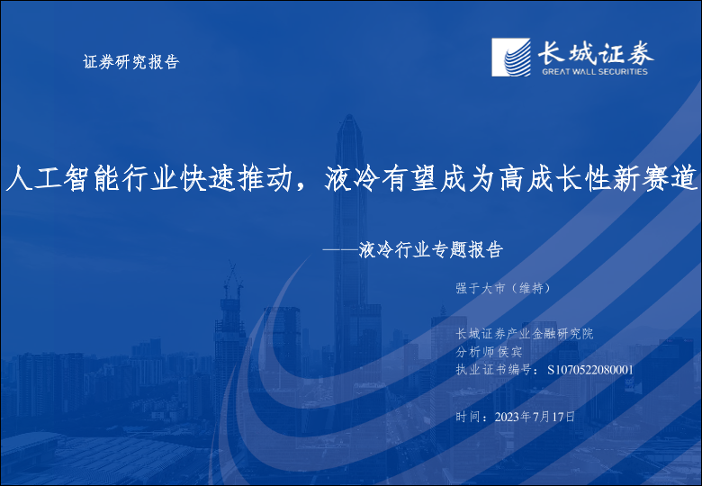 【长城证券】【20230717】液冷行业专题报告:人工智能行业快速推动,液冷有望成为高成长性新赛道-37页