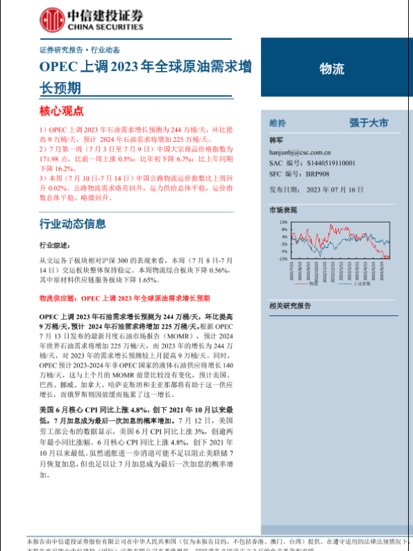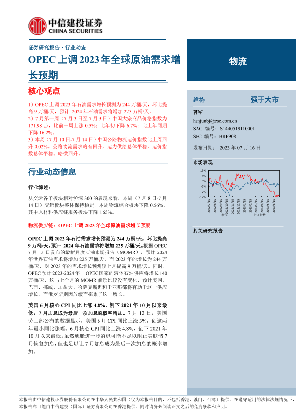 【中信建投证券】【20230716】物流行业:OPEC上调2023年全球原油需求增长预期-16页