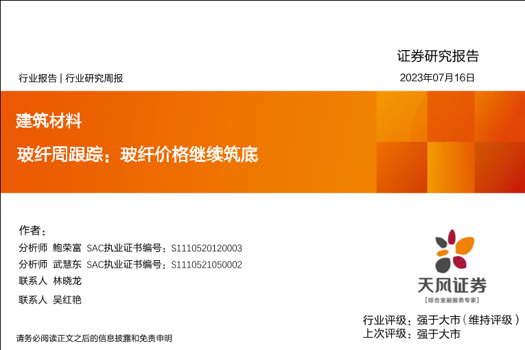 【天风证券】【20230716】玻纤周跟踪:玻纤价格继续筑底-22页