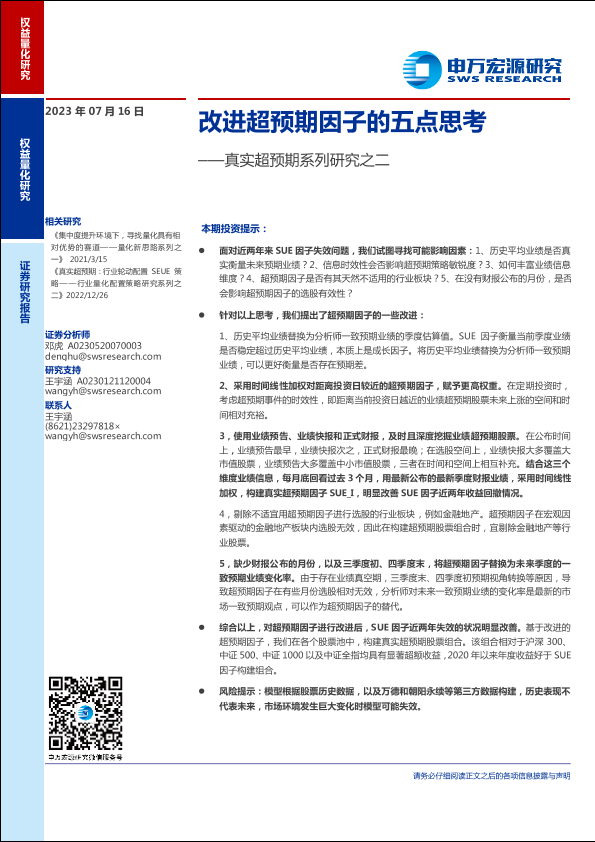 【申万宏源】【20230716】真实超预期系列研究之二:改进超预期因子的五点思考-31页