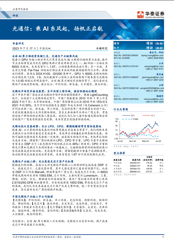 【华泰证券】【20230717】科技行业光通信:乘 AI东风起,扬帆正启航-34页