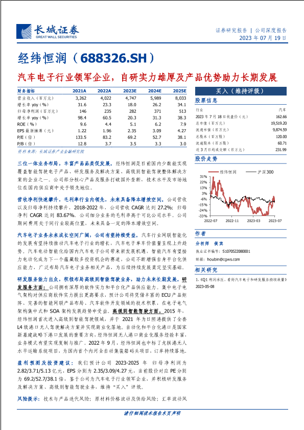 【长城证券】【20230719】经纬恒润(688326)汽车电子行业领军企业,自研实力雄厚及产品优势助力长期发展-38页