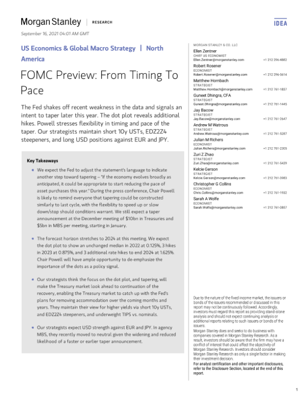 【Morgan Stanley】【20210916】联邦公开市场委员会预览:从时机到节奏-22页