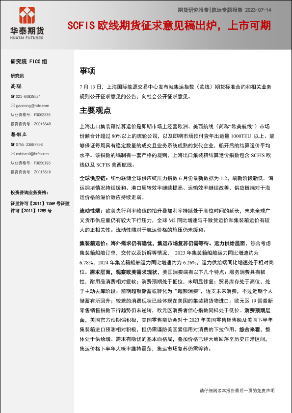 【华泰期货】【20230714】航运专题报告:SCFIS欧线期货征求意见稿出炉,上市可期-27页