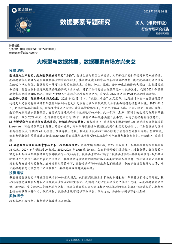 【国金证券】【20230714】计算机行业数据要素专题研究报告:大模型与数据共振,数据要素市场方兴未艾-33页