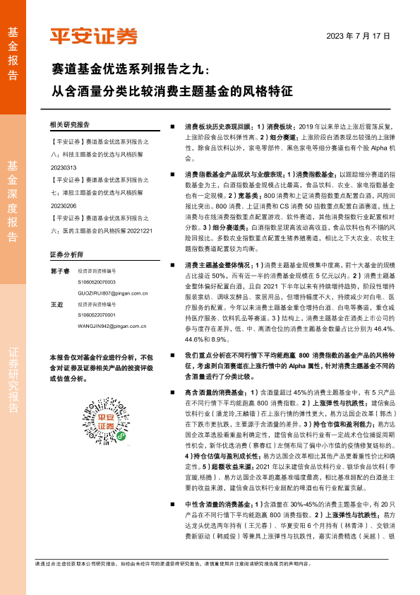 【国金证券】【20230714】赛道基金优选系列报告之九:从含酒量分类比较消费主题基金的风格特征-25页