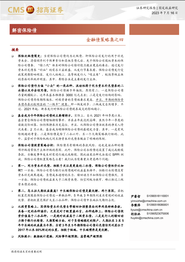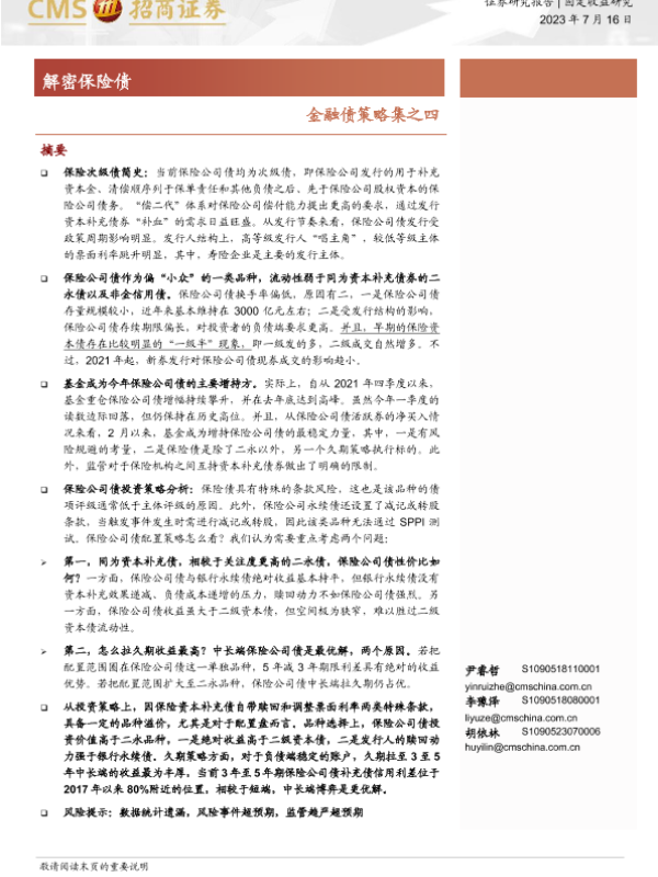 【海通证券】【20230716】金融债策略集之四:解密保险债-18页