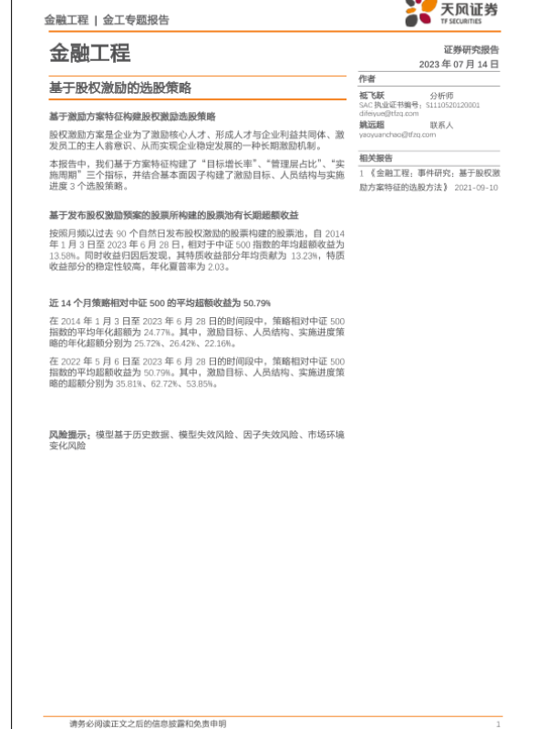 【天风证券】【20230714】金融工程:基于股权激励的选股策略-22页