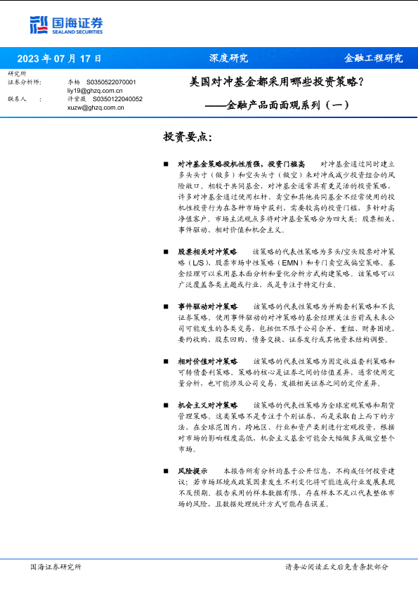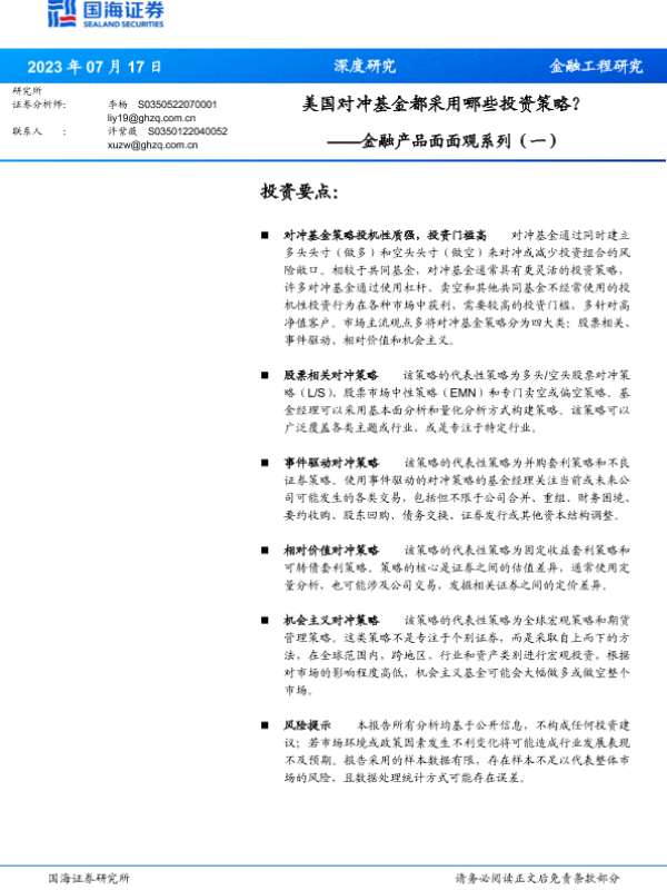 【国海证券】【20230717】金融产品面面观系列(一):美国对冲基金都采用哪些投资策略?-18页