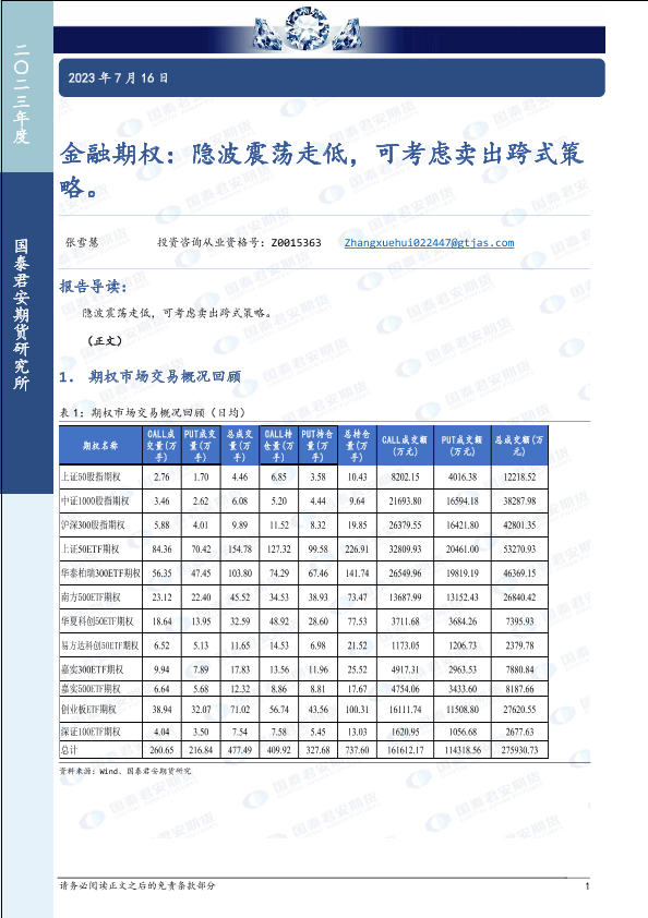【国泰君安期货】【20230716】金融期权:隐波震荡走低,可考虑卖出跨式策略-17页