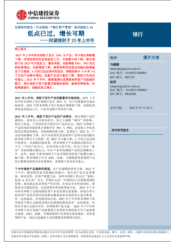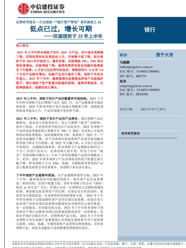 【中信建投证券】【20230720】银行业深度·“银行资产管理”系列深度之33:回望理财子23年上半年,低点已过,增长可期-19页