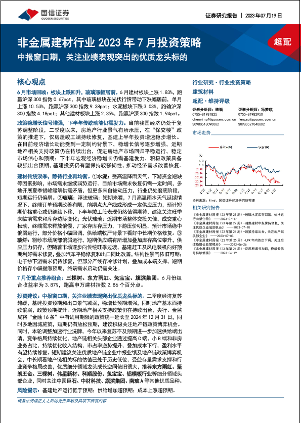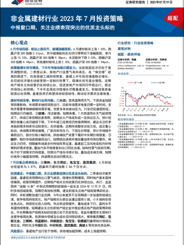 【国信证券】【20230719】非金属建材行业2023年7月投资策略:中报窗口期,关注业绩表现突出的优质龙头标的-31页